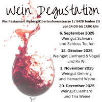 Samstag 1. November 2025 14-17 Uhr Weindegustation im Wirtshus zum Wyberg